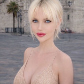 Blonde with gray eyes, 1.80 m tall, and a spectacular figure. Impeccable presence.