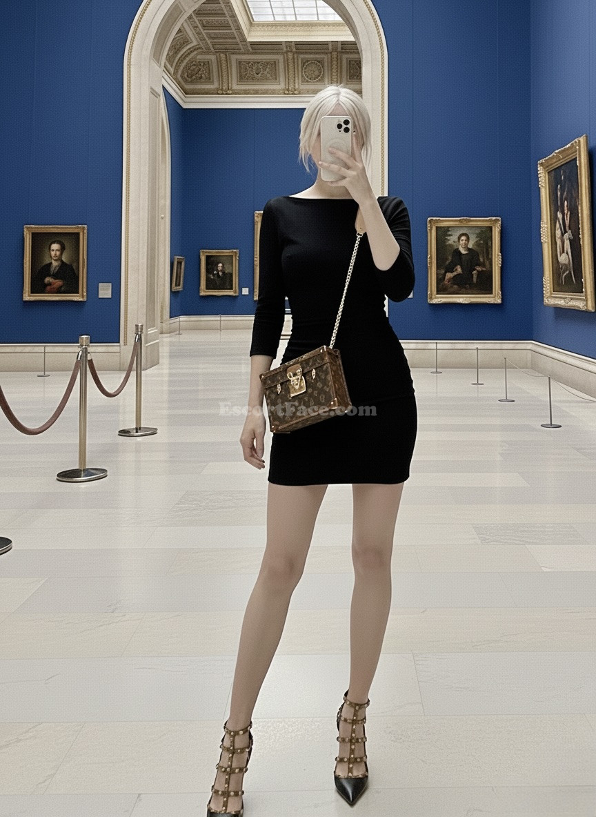 Blonde with gray eyes, 1.80 m tall, and a spectacular figure. Impeccable presence.